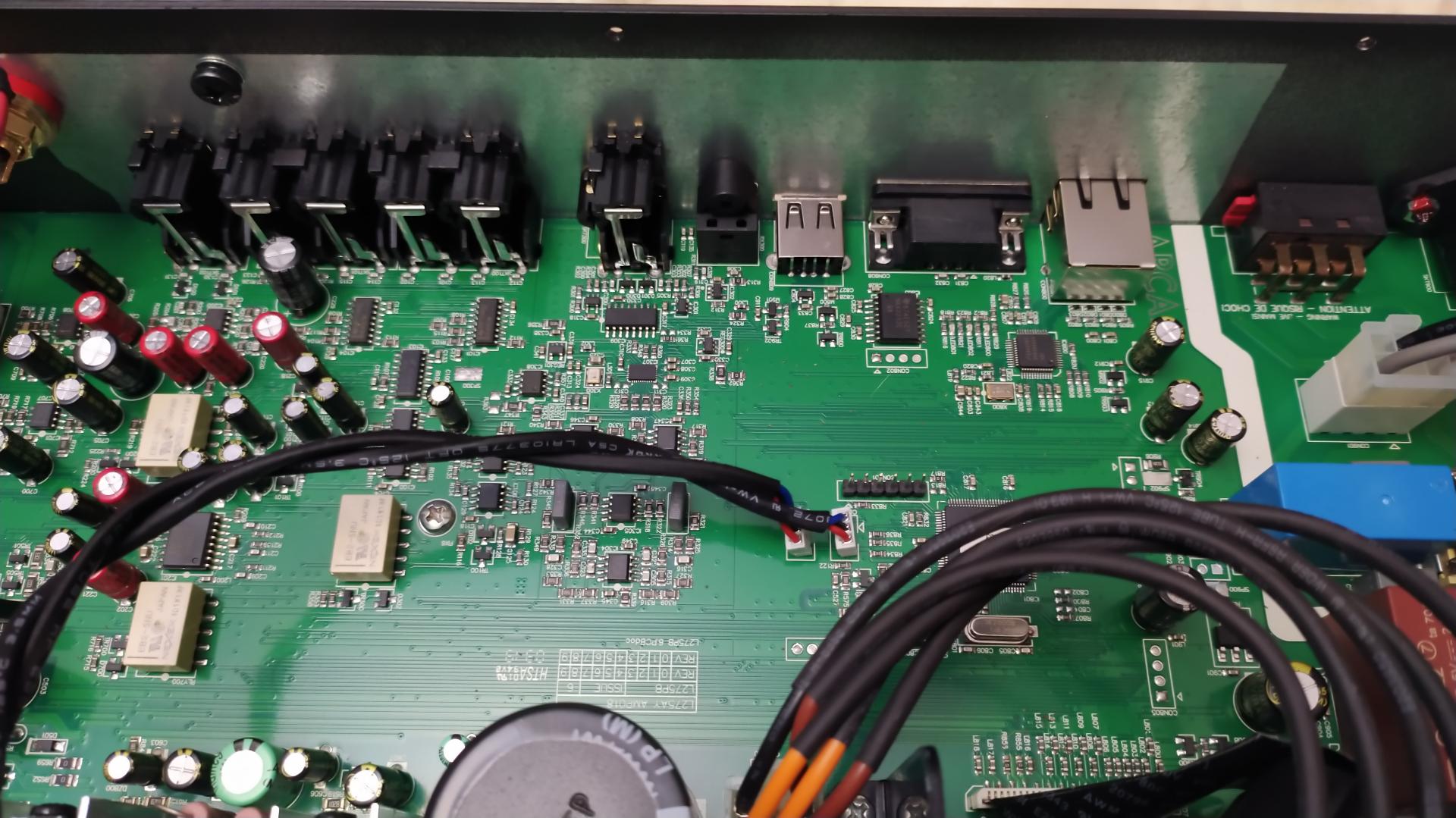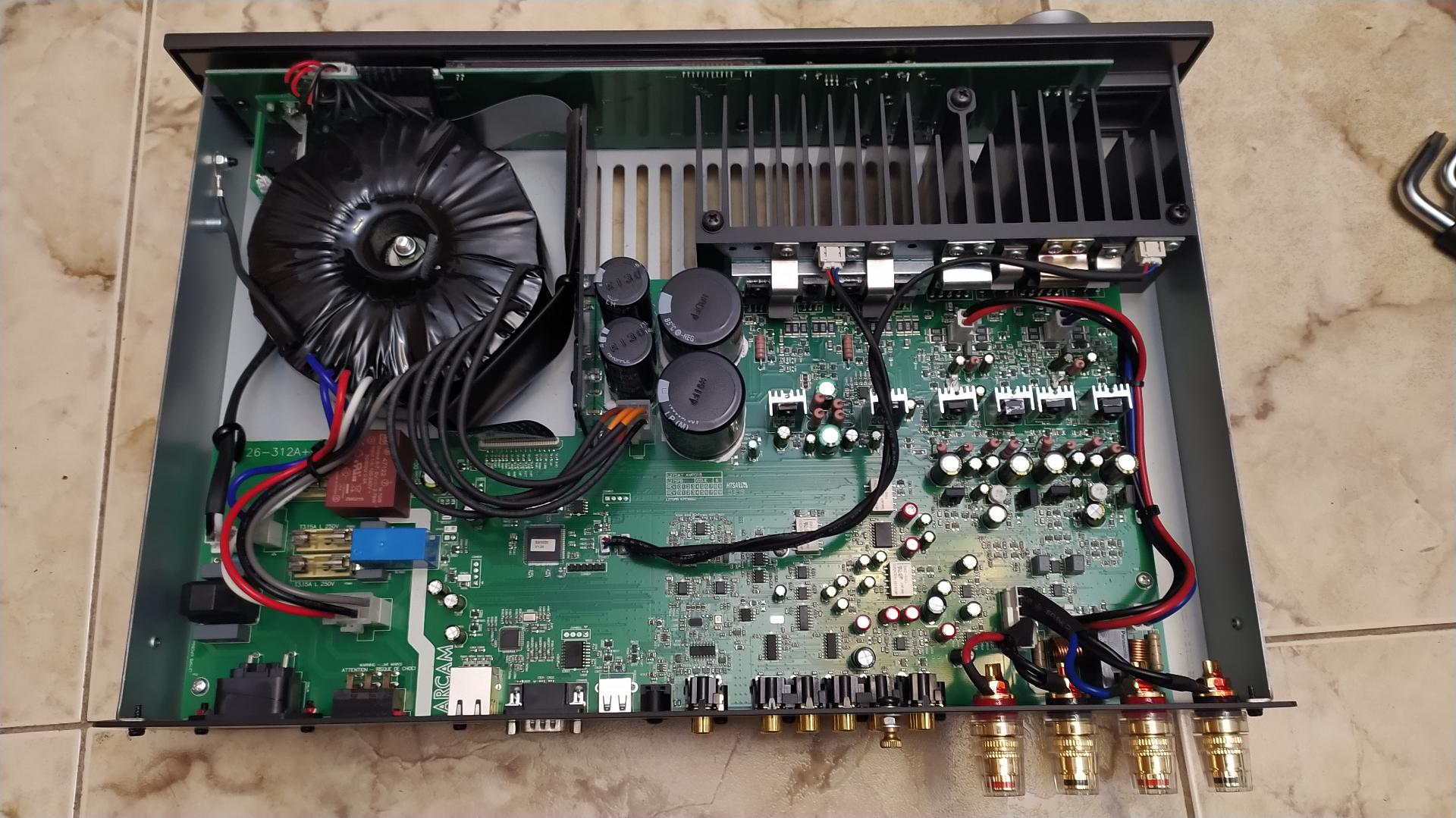 По случаю разобрал свой усилитель; в дальнейшем надо будет найти причину пропадания одного канала, а пока немного фото: